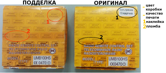 5. Логотип компанії Elmes Electronic розміщений на задній стороні брелока-передавача. Також зверніть увагу на гвинти та маркування CE, яка на підробці більше і менш акуратно виконана.